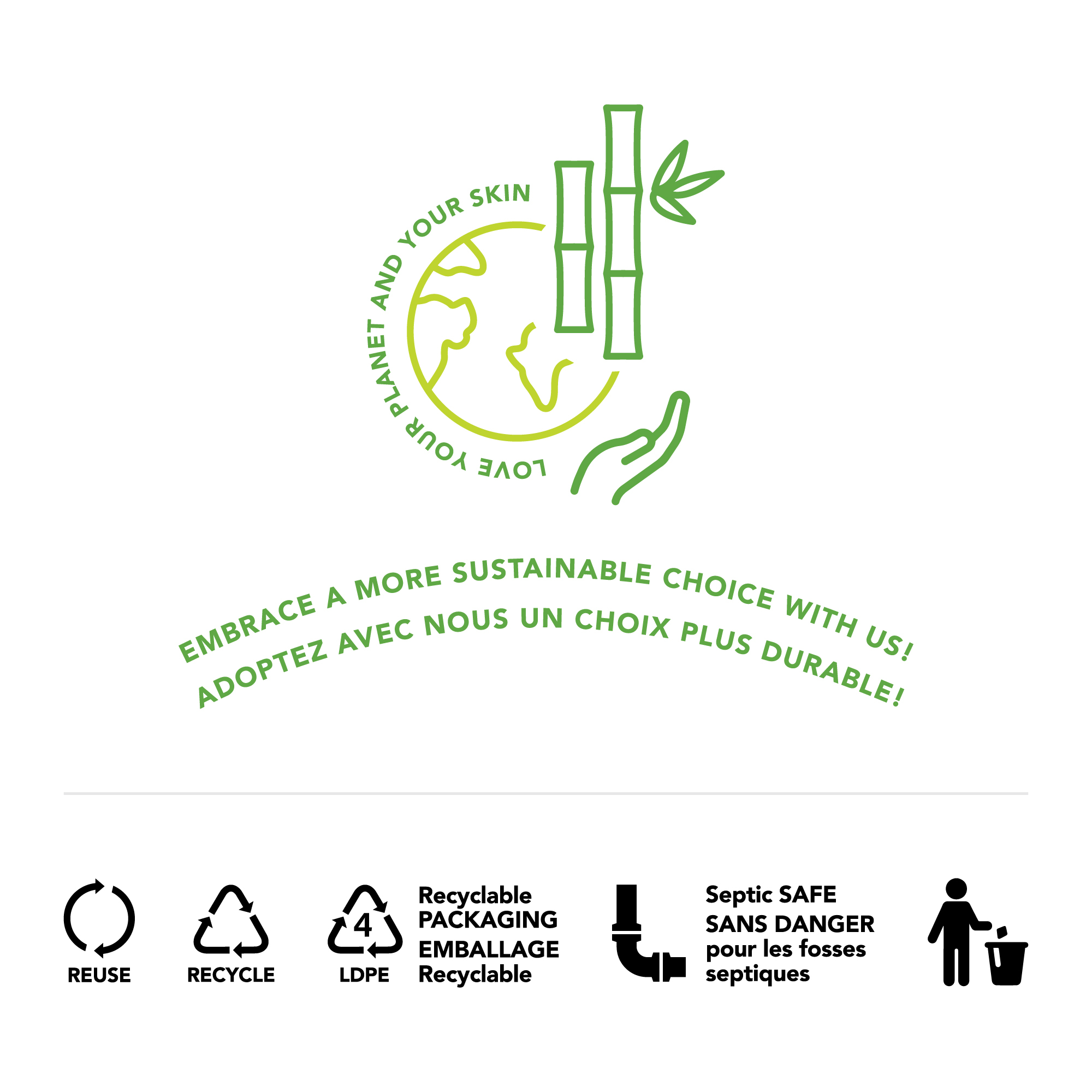 Unbleached and free from harsh chemicals, it has a natural scent and can absorb pleasant aromas. We package our toilet paper in recyclable plastic packaging to keep the tissue fresh.